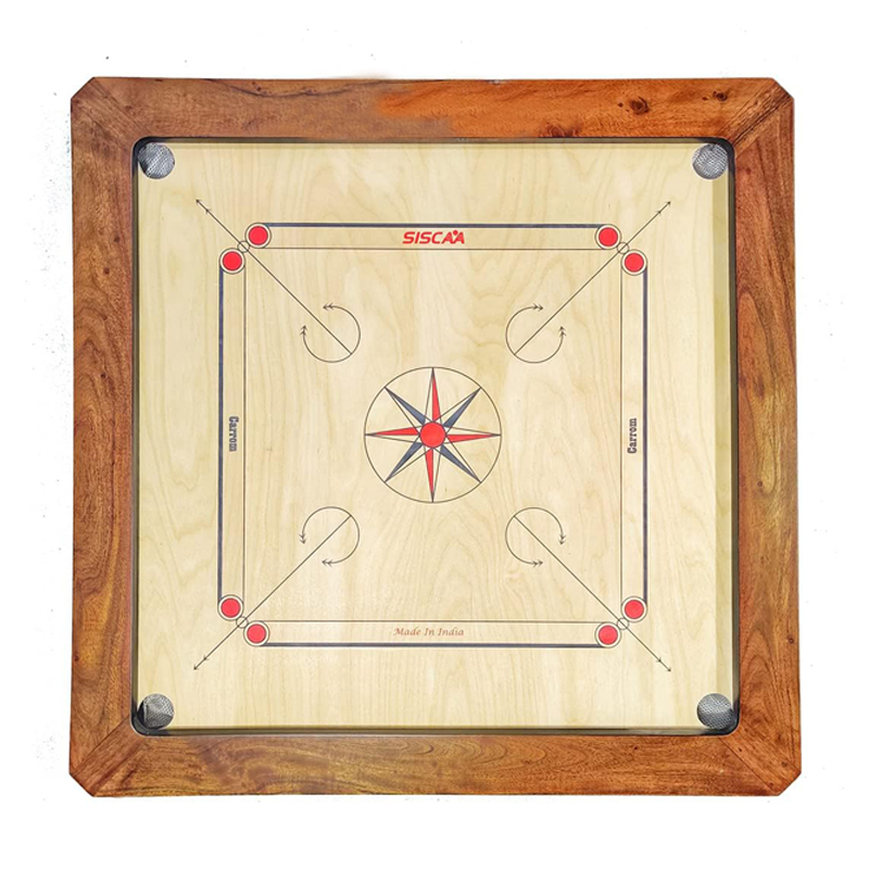 The Champion Carrom Board is a premium, tournament-grade board designed for serious play, featuring a highly polished, smooth playing surface (often 4mm-6mm thick) and durable, thick Mahogany or Kikar wood frames. Known for superior rebound, these boards typically measure 29" x 29" internally, with a sturdy build weighing 10-20kg.