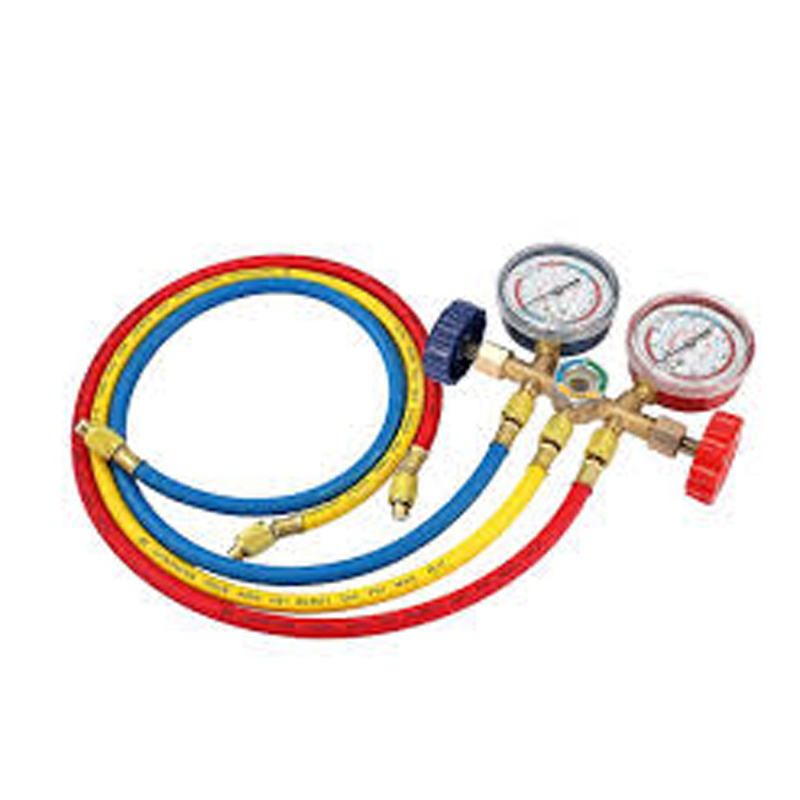 An AC manifold gauge set for R134a and R404A is a diagnostic and charging tool used to measure pressure and service refrigeration systems. These kits typically feature color-coded gauges (blue for low pressure, red for high pressure), rubber hoses, and brass manifolds, allowing technicians to diagnose, evacuate, and charge automotive (R134a) or commercial (R404A) AC units.