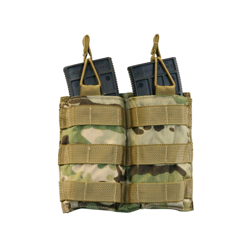 A Double Shingle MBITR pouch is a specialized, low-profile, and MOLLE-compatible tactical pouch designed to securely carry MBITR-style radios (such as the PRC-148 or PRC-152) or similar medium-sized handheld radios, often allowing for the carry of two such units or magazines in a "shingle" (layered/open-top) configuration. It is designed for quick access, often with an open-top design, and features adjustable retention, such as elastic bungee cords with pull tabs.