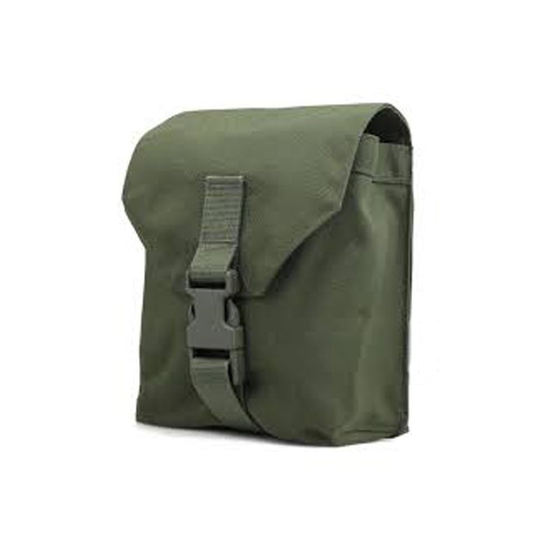 The Minimi Pouch is a rugged, MOLLE-compatible tactical pouch designed to carry 200 rounds of 5.56mm linked ammunition for the FN Minimi/M249 light machine gun. Constructed from durable 1000D Cordura or 900D nylon with reinforced stitching, it features a top-loading design, secure Fastex buckle closure, and drainage eyelets.